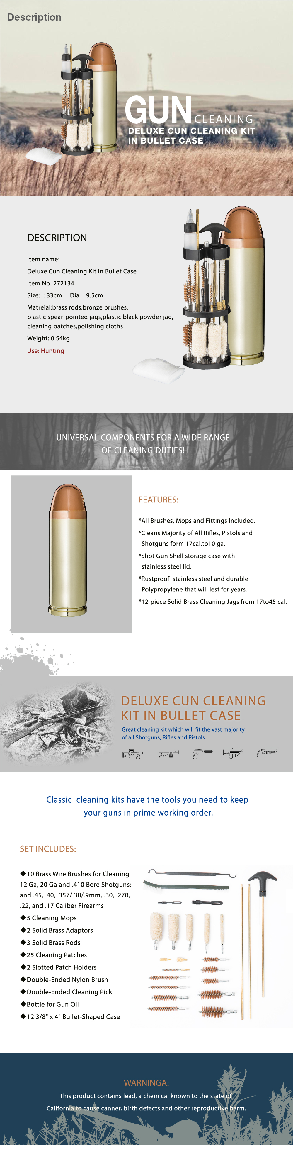 Deluxe Gun Cleaning Kit in Bullet Case